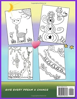On the back cover, you’ll find the words “Give Every Dream A Chance,” a reminder to always follow your passions. Most of these drawings were done before the Internet. I had dreamt of publishing a children’s coloring book; I just didn’t know how to get it out there. Now, in my forties, I am giving every dream a chance. I hope you do too, no matter how old you are. Follow all your passions!